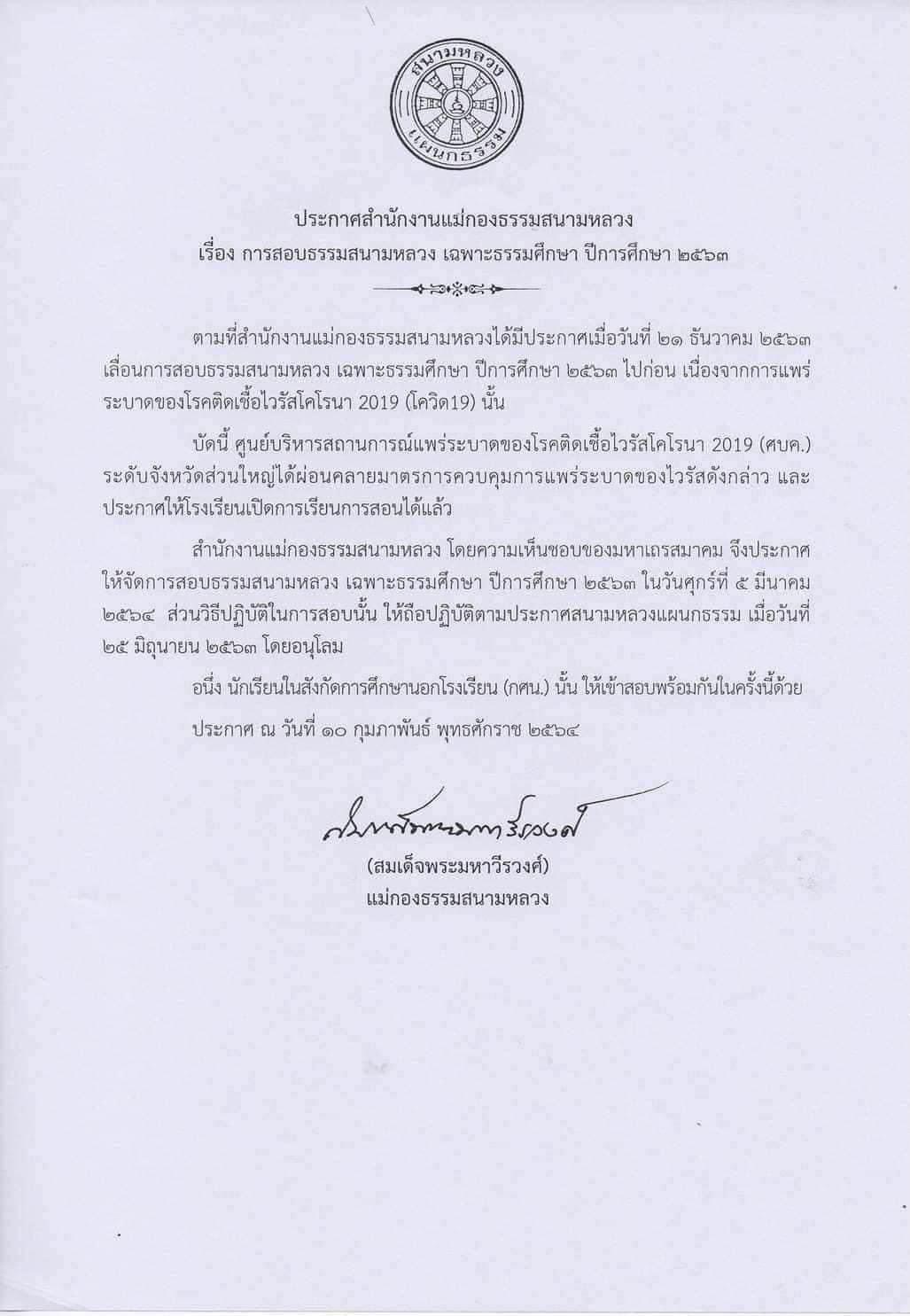 ประกาศสำนักงานแม่กองธรรมสนามหลวง